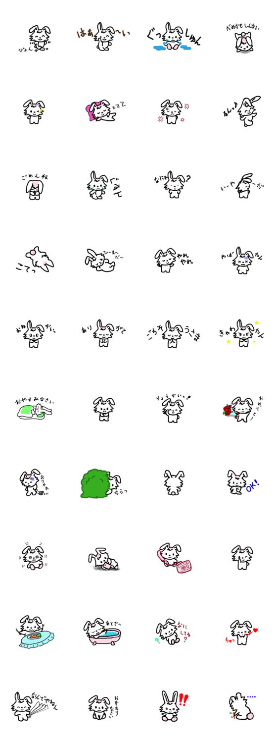 ぶさかわいい うさぎのぴょんのスタンプです。