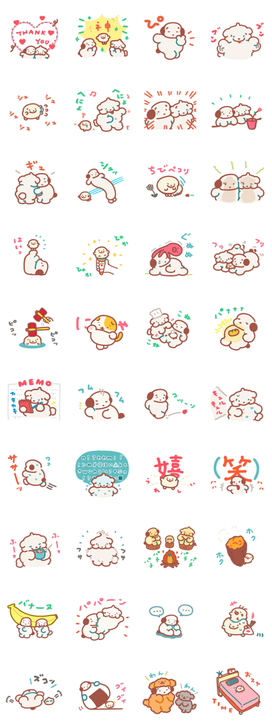 ココモとスモアのニュースタンプ!へにょへにょ、ブンブン、ぴかぴか…オノマトペがたくさんの、わちゃわちゃにぎやかなスタンプです◎