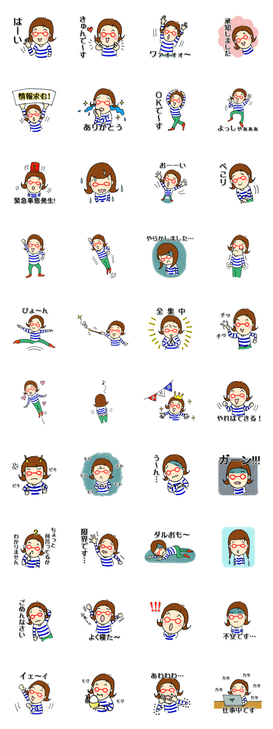 ヤスエさんスタンプ第17弾! ボーダーシャツと赤いメガネがトレードマークのヤスエさんです。