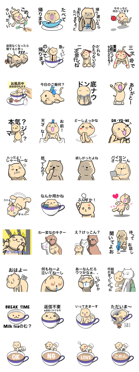 ティーカップキャット(とりあえず伝言) -LINEスタンプマニア