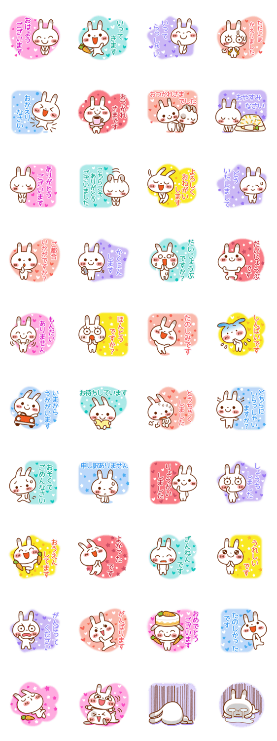 敬語のメッセージが入った可愛いブチうさぎのスタンプです。友達はもちろん目上の方にも使えるメッセージです。プリンのブチうさぎシリーズ第3弾。