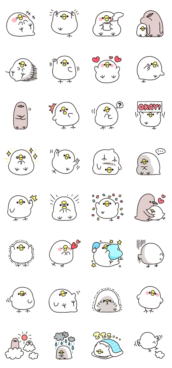 『LINEスタンプの日特集』参加スタンプです。 デフォルト風で毎日使えるまるめのとりさんのスタンプです。