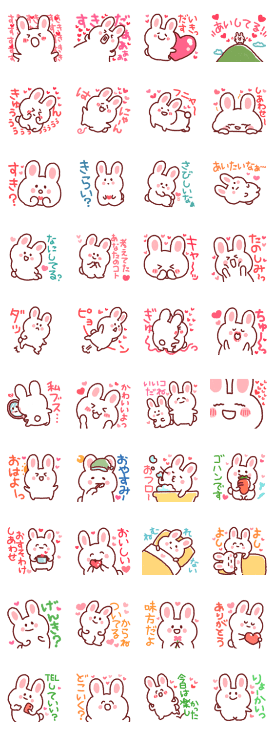 ハートいっぱいのかわいいウサギスタンプだよ♪恋人や友達と使ってね♪