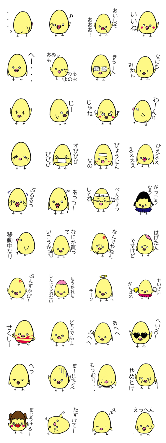 ふてぶてしくてなんとなくかわいくないひよこのスタンプです。