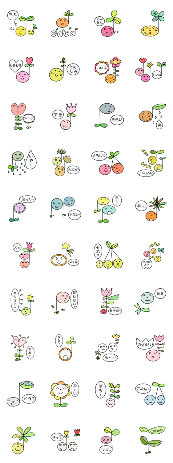 日常に使えるメッセージや気持ち。簡単なお返事などのスタンプです。音符・葉っぱ・お花で楽しく使えますように。