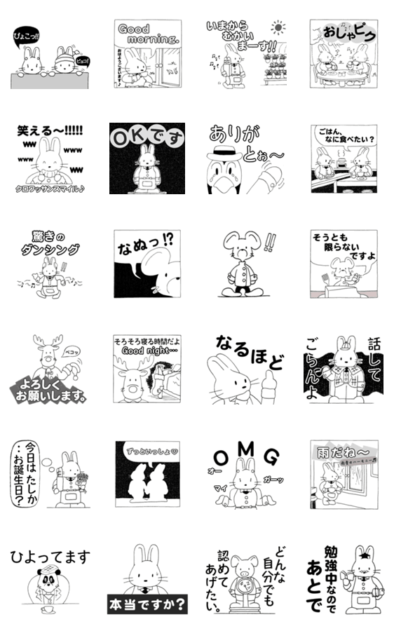 ほのぼの4コマ絵本の”森のカフェ”からオリジナルスタンプ第二弾!! 森のカフェのマスター・マークと妻のリナ、常連客の動物達が、日常で使えるスタンプをお届けします。