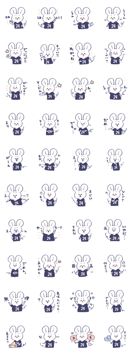 背番号ねずみ#24 黒 -LINEスタンプマニア