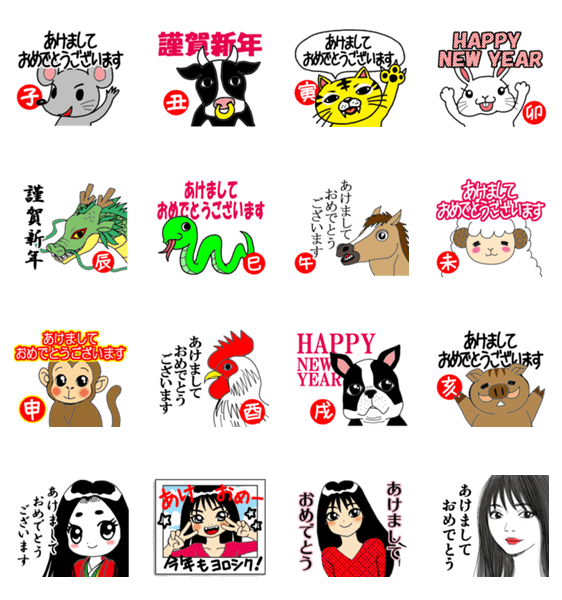 毎年使える新年の挨拶!年賀状!十二干支! -LINEスタンプマニア