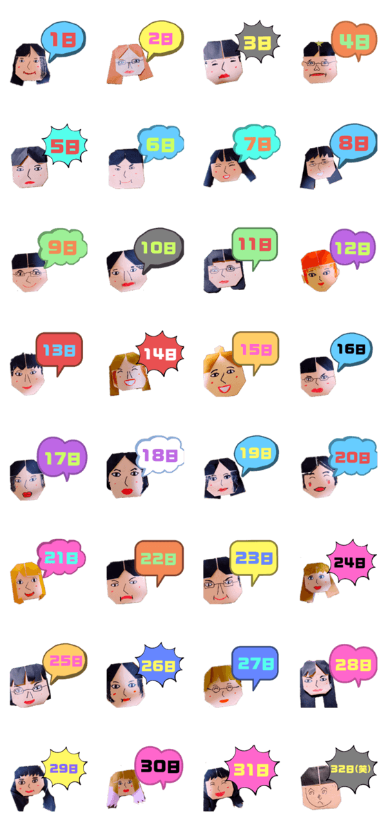 社会人学生の会話スタンプも第5弾!第5弾は2つ作っており、こちらは日にち編になります。月編とセットで合わせるとカレンダーみたいになって楽しいです♪