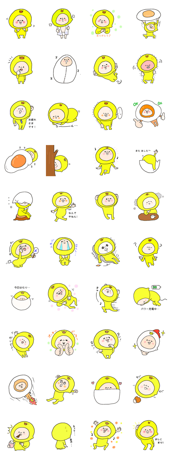 どうぶつ、アニマルスタンプ。ゆるーい動物のひよこ、たまご、目玉焼きスタンプです♡