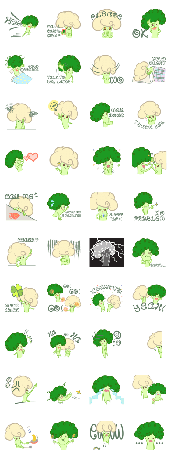 かわいいブロッコリーとカリフラワー姉妹のCcoliとCauliはあなたの会話がもっと面白くなります。 あなたの姉妹や親友が一緒に利用すれば楽しくなりますよ。