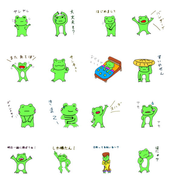 らしいカエルのスタンプ!