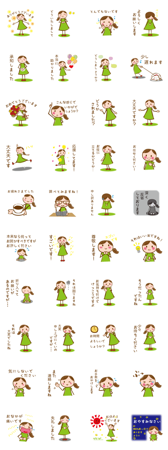 敬語を使う女の子の、日常使いやすいスタンプです。先輩、上司、年上の方との会話にどうぞ。