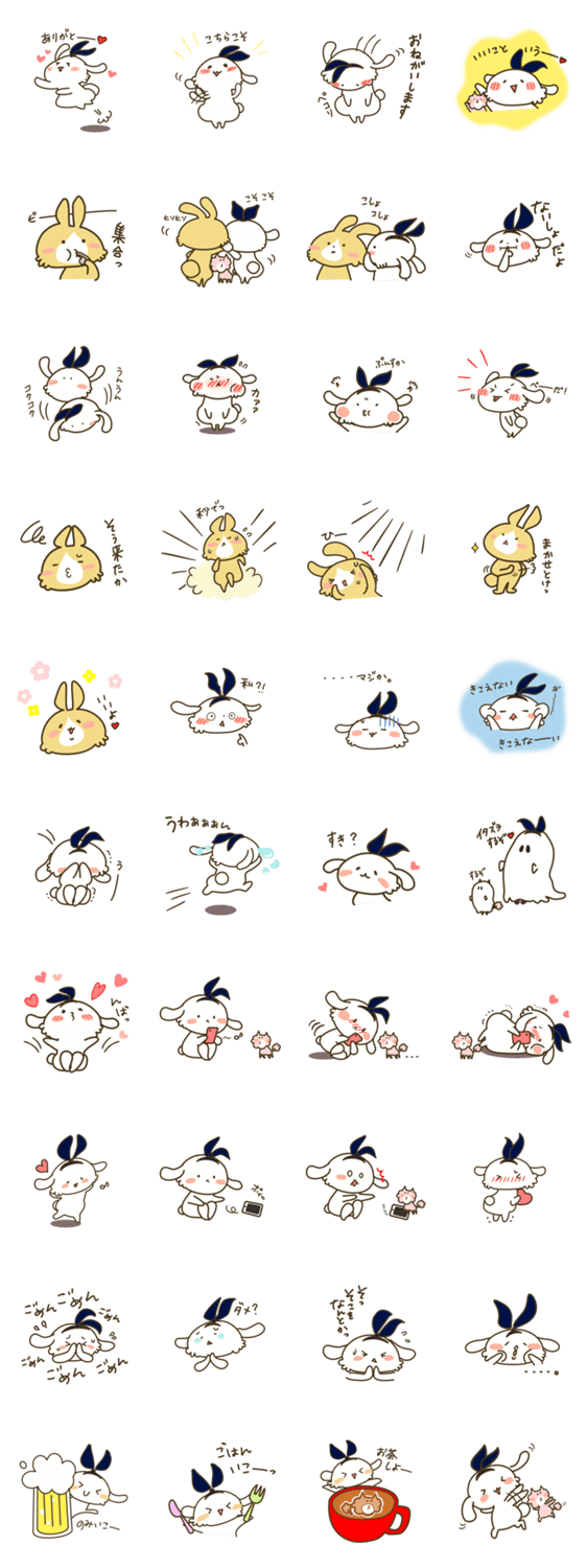 甘えたがりで寂しがり。大きなリボンは普通のウサみみへの憧れなんです。茶うさぎの彼氏とペットのネコと。仲良しのお友達や彼とのやり取りに♪