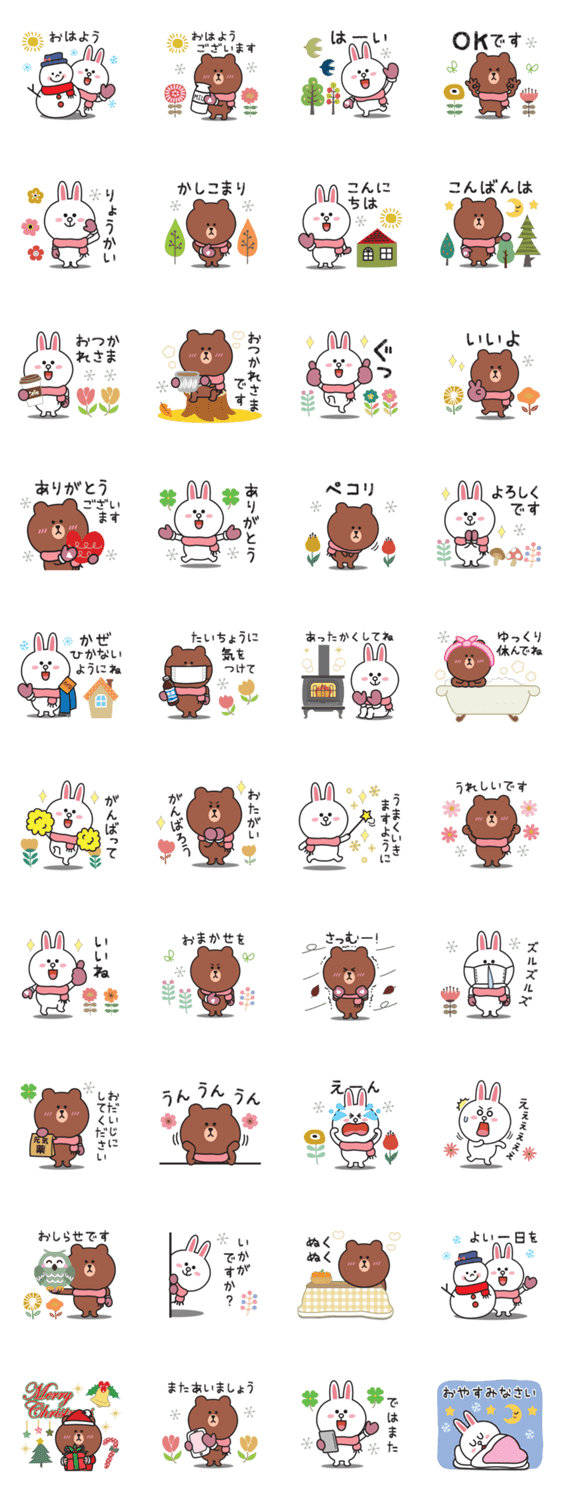 ブラウン&コニーの冬に使えるおしゃれな北欧風スタンプです♪ ※BROWN & FRIENDS をみんなでつくろう!キャンペーン参加スタンプです