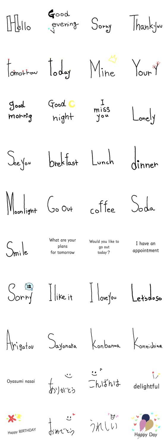 紫の英語と日本語スタンプ -LINEスタンプマニア