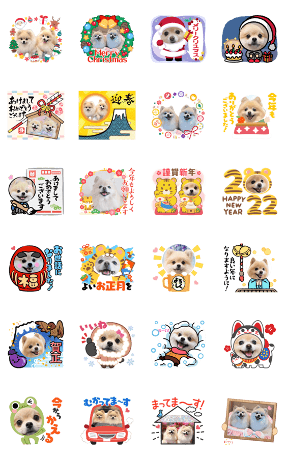 ポメラニアンのココびびちゃんクリスマスお正月スタンプ