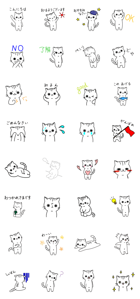 気ままに暮らしているネコのスタンプです。日常的な場面で気軽に使えるものを多めにしました。