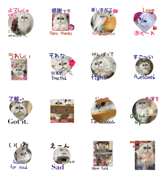 オシャレなペルシャ猫リキ(猫写真英語付) -LINEスタンプマニア