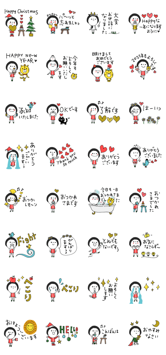 mottoの黒髪レト子♡ハッピーホリディ -LINEスタンプマニア
