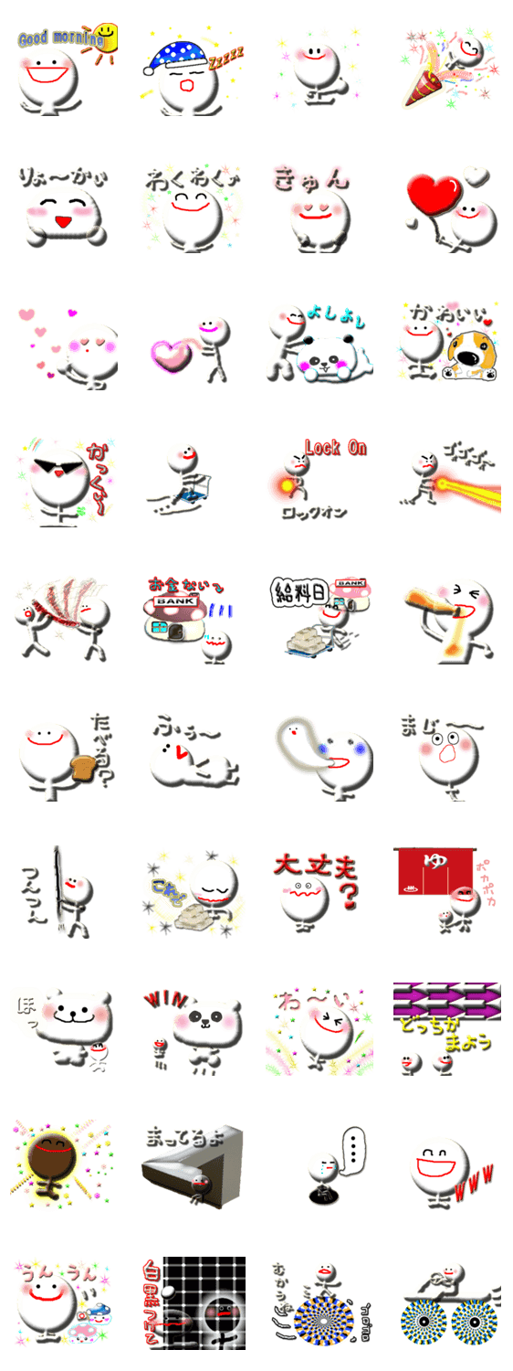 透明なので背景色で変化。最後の3つは連続使用で目線移動すると動く?(個人差有、大画面がお勧め)。プレビューではわからないので、実際に試してみて下さい。