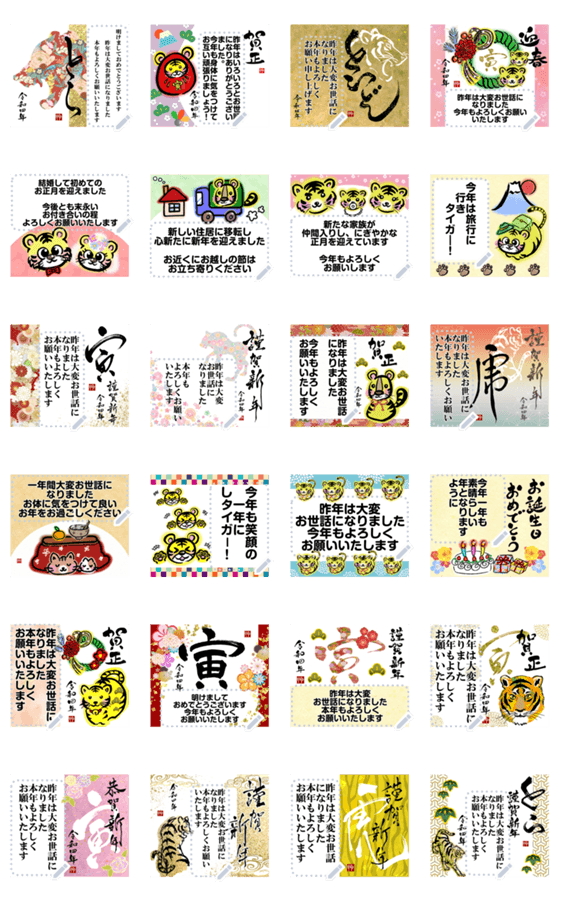 | スタンプ説明 | 好きな文章を自由に入れることができます。ビジネス 上司 同僚 男性 目上の方 友達 老若男女 可愛いトラ(とら)の絵 引っ越し 誕生日 転居 誕生 出産 結婚 年末の挨拶 正月 現在この商品は一部のスマートフォン版LINE 10.3.0以上のトークルームでのみ使用できます。動作環境の最新情報はヘルプをご確認ください。 |