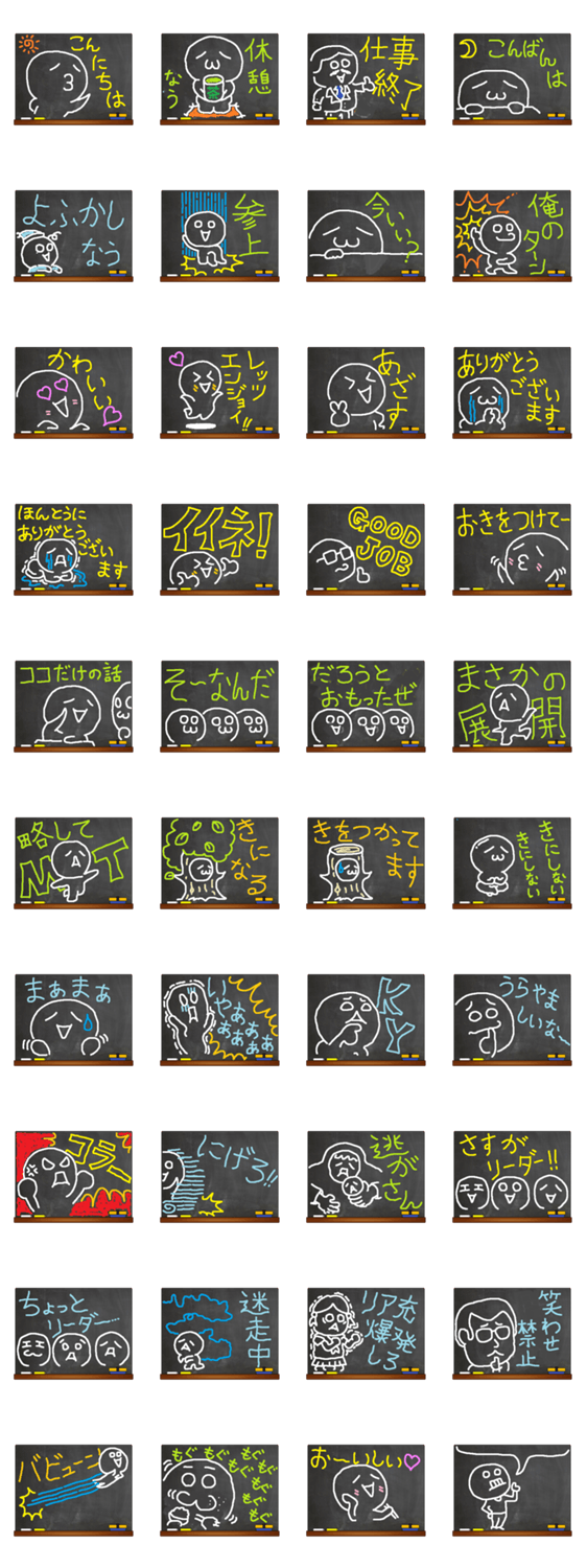 日常会話を黒板の落書きで表現。LINEトークを懐かしい学校の教室での会話のようにできればと思い作成しました。かゆいところに手が届く?第5弾。