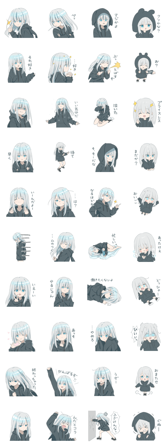 パーカーの女の子(銀髪)3 -LINEスタンプマニア