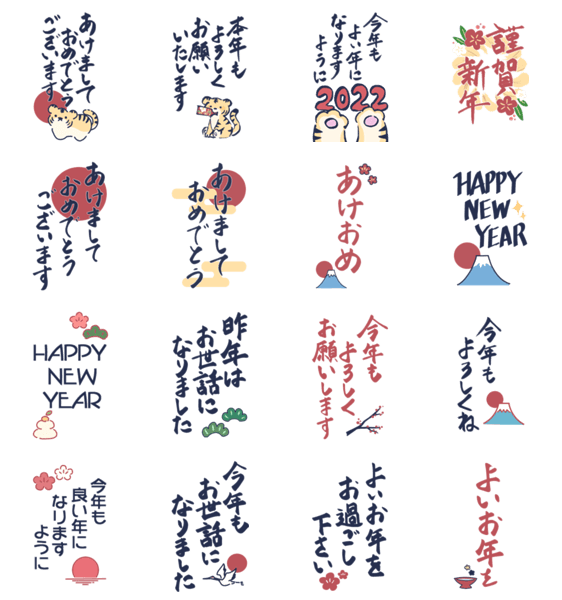 筆ペンで描いたシンプルなデザインで、年賀状を送るように大人な新年の挨拶ができます♪激渋BIGスタンプで一味違う新年の挨拶にしちゃおう+*.寅年/和風/2022/あけおめ有り! ※このスタンプはトークルームで大きく表示されるBIGスタンプです。
