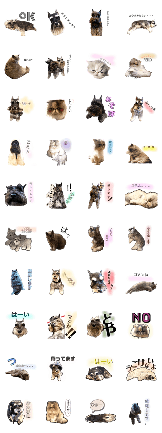 ミニチュアシュナウザー&エキゾチックショートヘアの可愛いくてシュールなスタンプです*