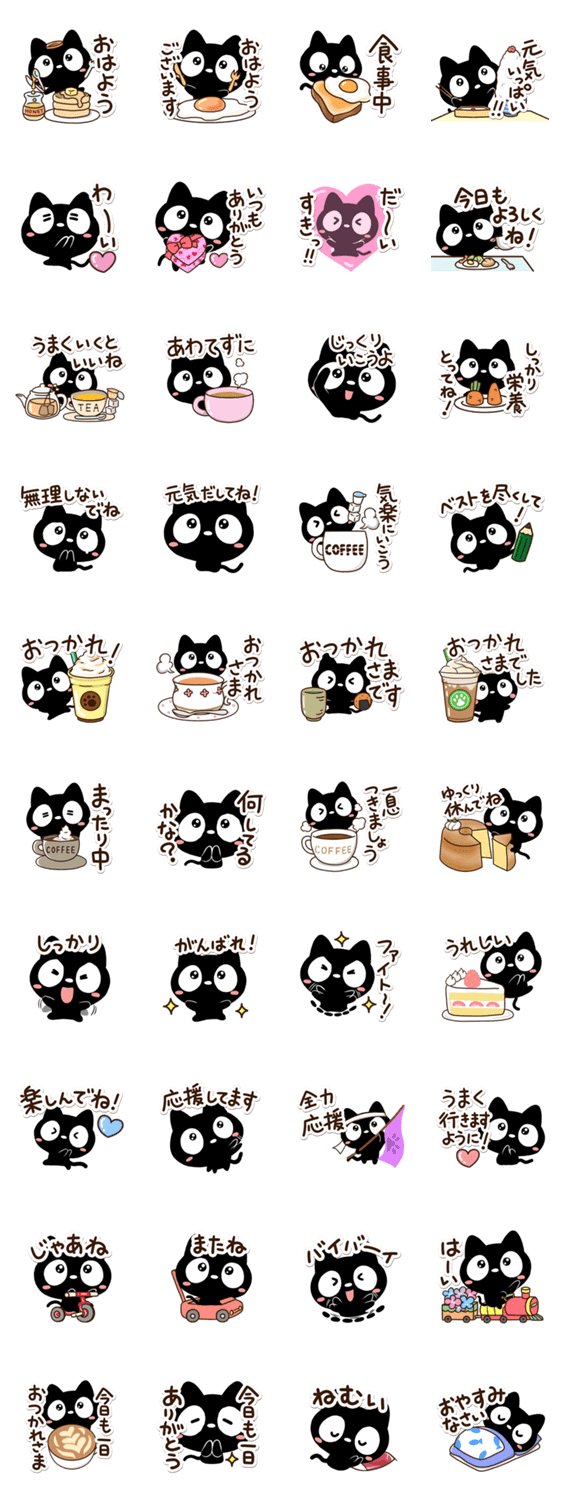 『クロネコすたんぷ』の相手を思い労わる【応援・気づかい】編です。好きな人や、家族、友達など身近な人へ励ましのメッセージを送ることができる黒猫スタンプ。【かたこ】