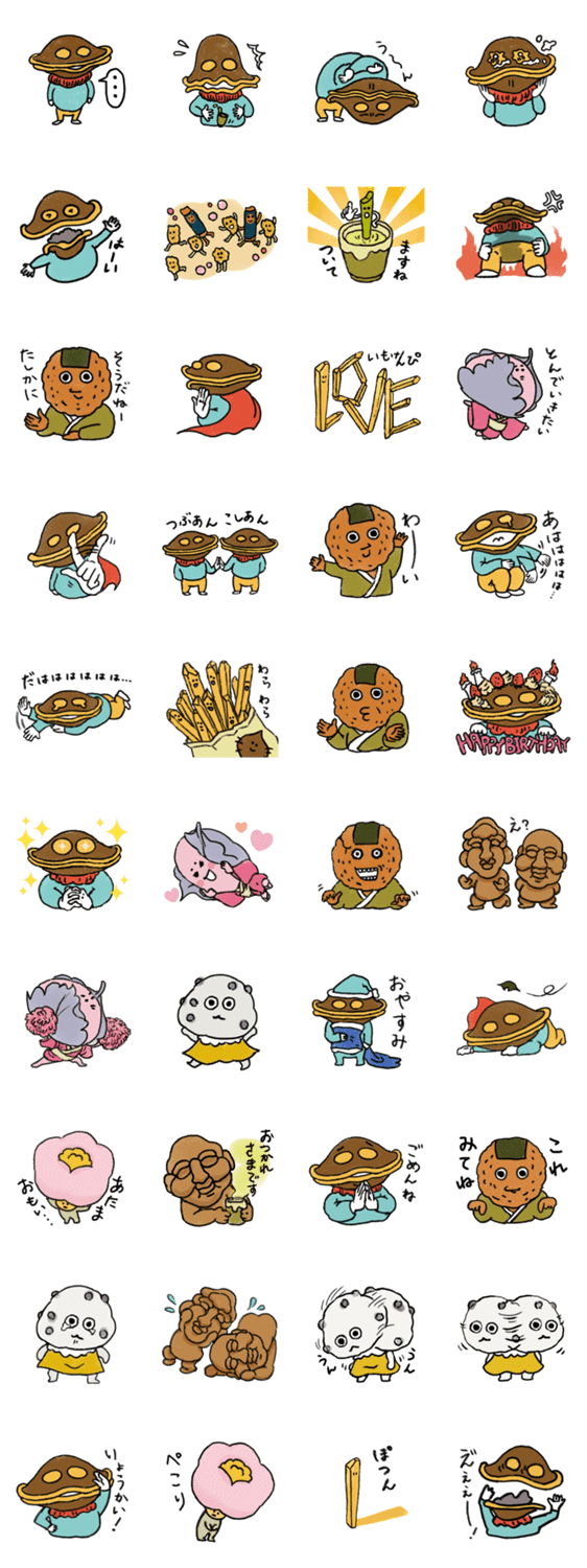 どら焼きと友達の和菓子たちのスタンプです。どら焼きたちの喜怒哀楽をほっこり表現、使いやすいスタンプにしました。和菓子好きな方、ほっこりしたい方にオススメです。