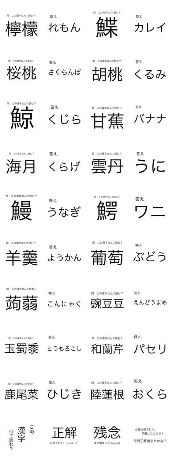 子供〜大人まで、楽しく出来るクイズになっています。勉強がてら是非使ってみて下さい。
