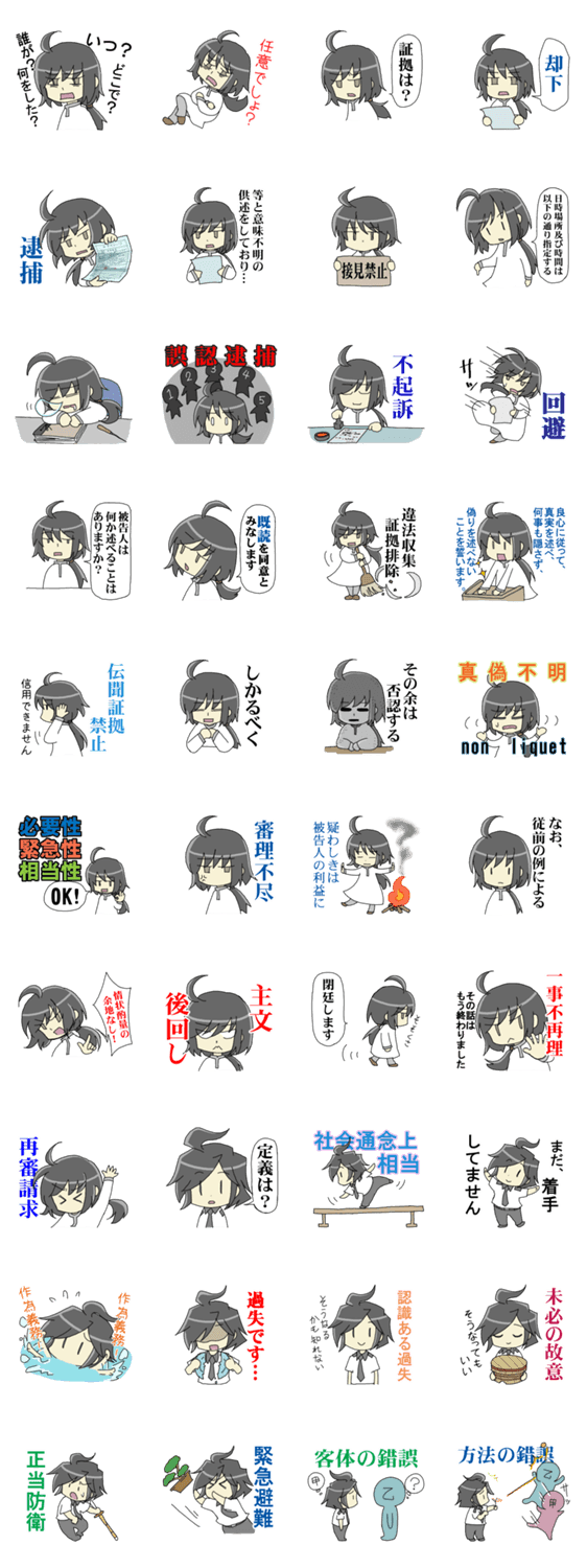 法律プラスのスタンプ第2弾です。今回は、刑事法スペシャル!刑事訴訟法を知っている人も、知らない人も………しかるべく。