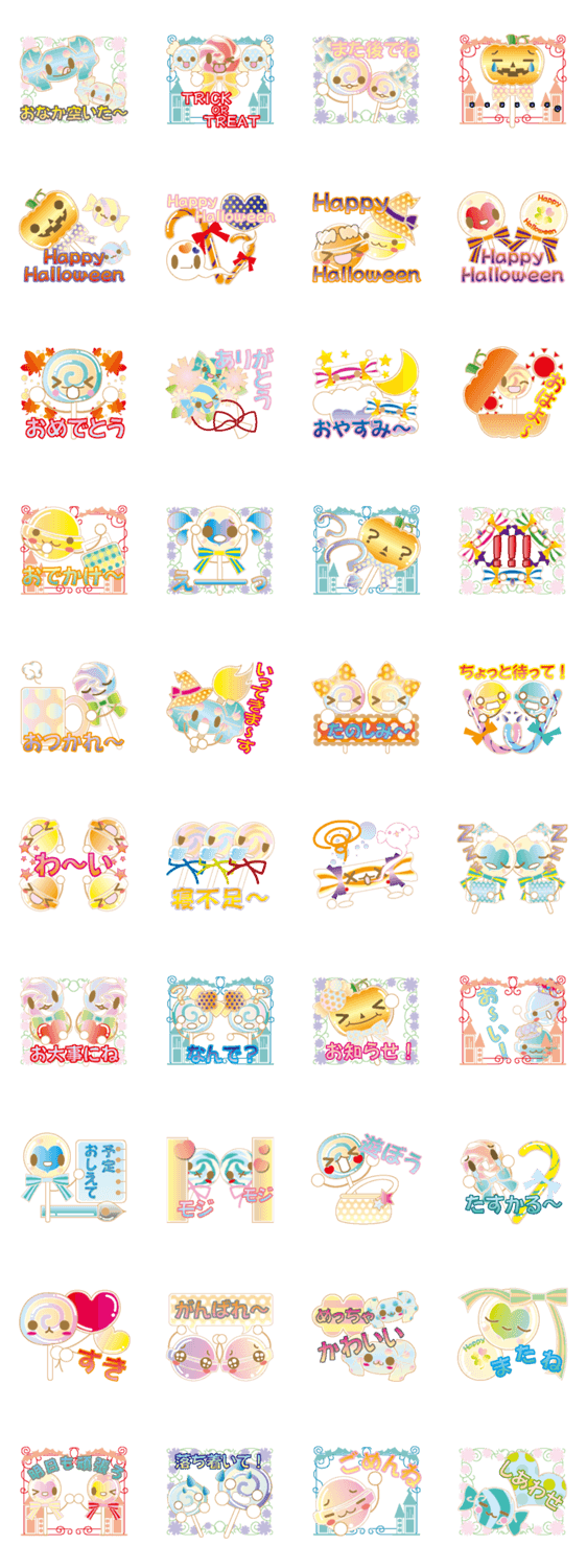 カラフルで様々なキャンディーのスタンプです。秋やハロウィンの季節にいかがですか?