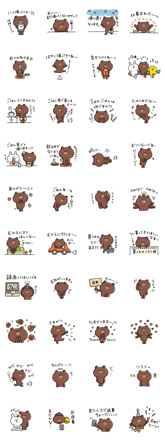 ゆるゆる〜なブラウンが家族にメッセージを伝えます。友達、カップルなどの親しい人に向けても♪ ※BROWN & FRIENDS をみんなでつくろう!キャンペーン参加スタンプです