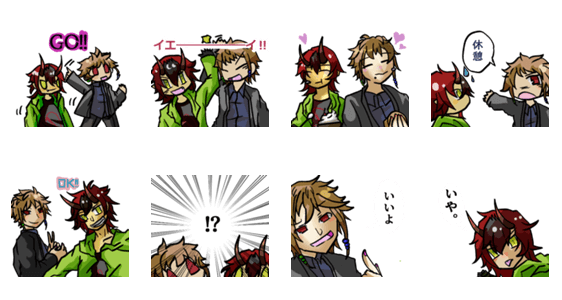 うちの創作二人組がわちゃわちゃしてるスタンプ。