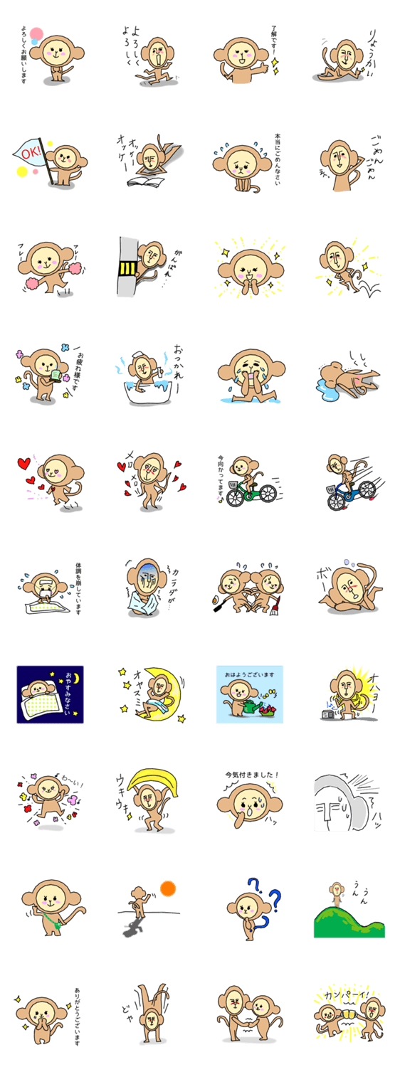 きっちりタイプとマイペースタイプな二匹のおさるのスタンプです。