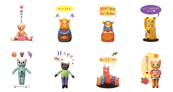 オリジナルのねこ人形を使ったスタンプです。子供のねこ、若いねこ、 大人ねこ、いろんなねこがごあいさつを伝えます。 ※このスタンプはトークルームで大きく表示されるBIGスタンプです。