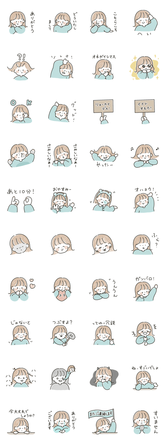 いつでも使えるゆるいおんなのこのスタンプ
