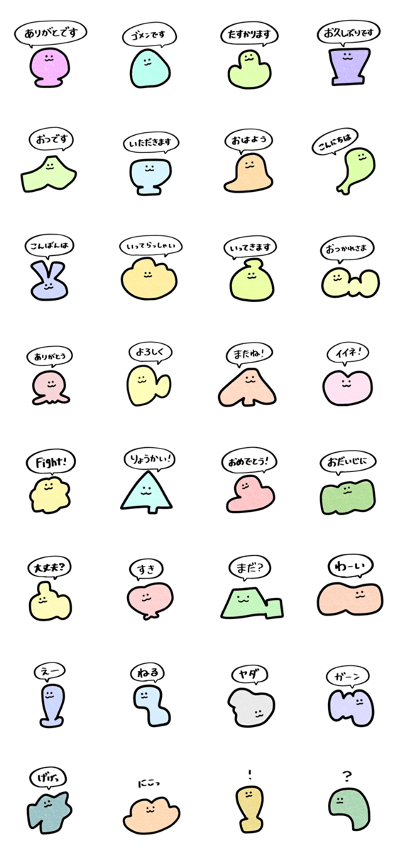 ゆるくてへんてこな可愛らしいモンスターのスタンプ! 敬語,タメ口の挨拶があるので誰にでも使えて便利♪