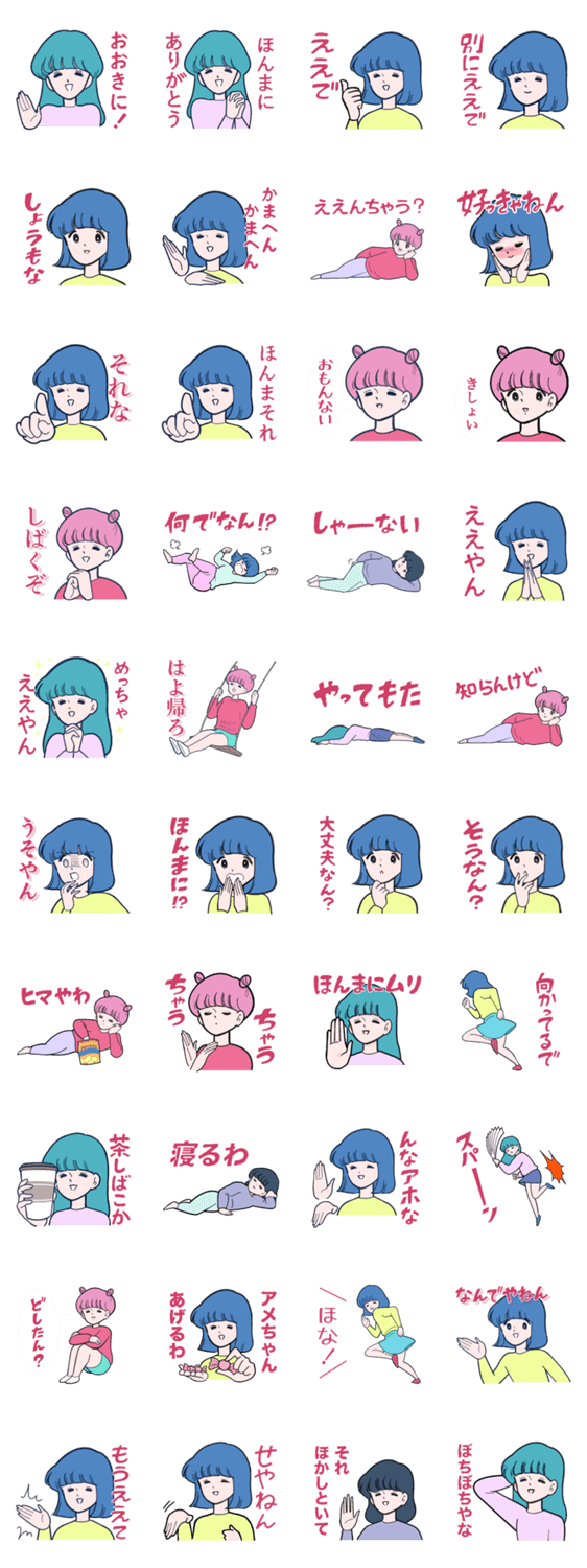 ボブa.k.aえんちゃんの「可愛い女の子たちによるスタンプ」シリーズ関西弁バージョンです!