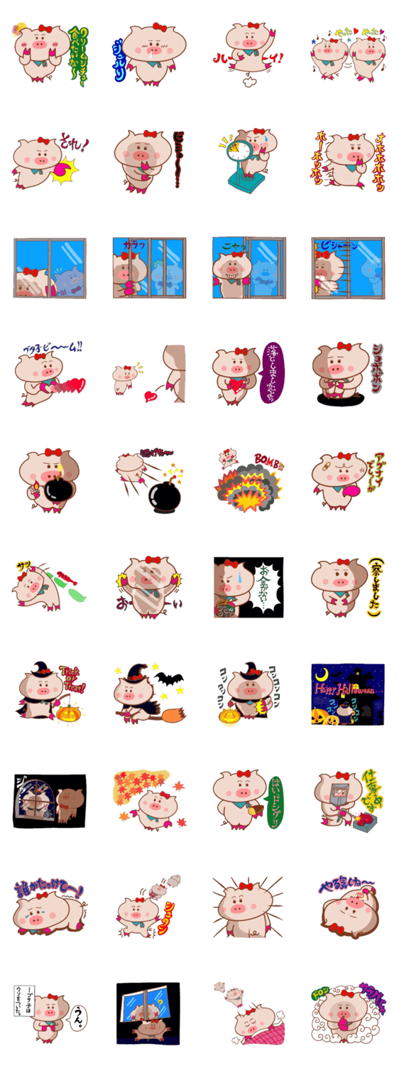 ブタ子の毎日、第五弾です。今回はハロウィン用のスタンプも入ってます。ブタ君もいます。