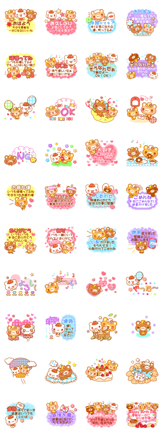 メッセージ付きくまちゃんと文字なしセット -LINEスタンプマニア