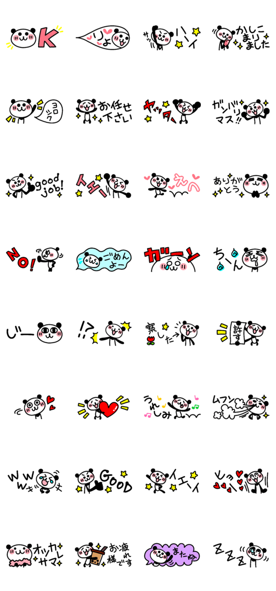 会話に使いやすい手描きパンダ33は省スペーススタンプの第3弾です♪半分サイズなのでトークを邪魔しません。シリーズで使うと更に会話が弾みます♪(≧▽≦*