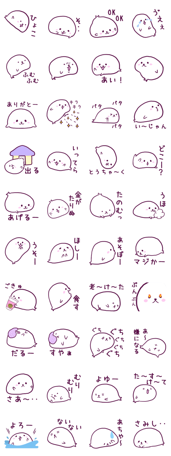 かわいい。シンプルで使いやすいアザラシです。女子トーク、友達、家族、彼氏彼女との会話に。