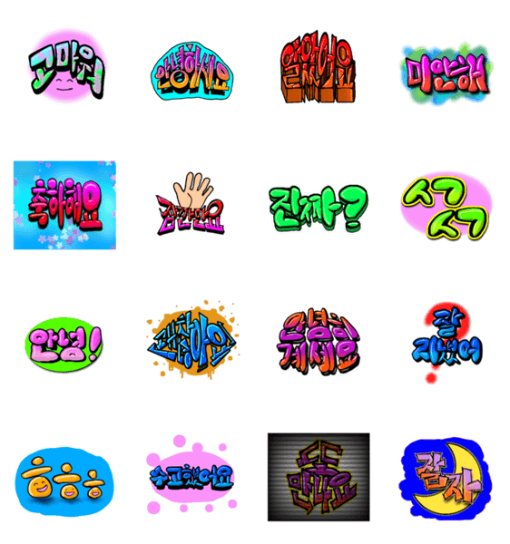 グラフィティーアート文字みたいなスタンプをハングル文字で作りました。挨拶や返信に使ってください。