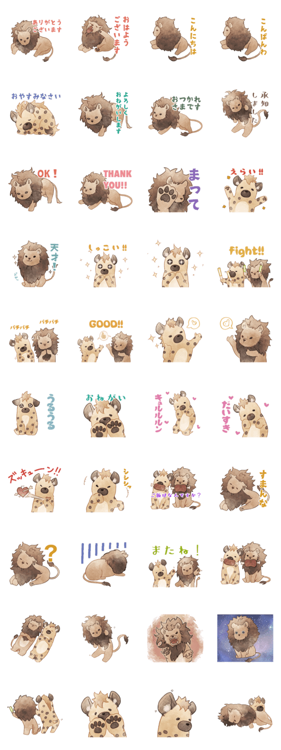 ライオンさんとハイエナさんの日常使いできるスタンプです 推し活動してる人にも使えます