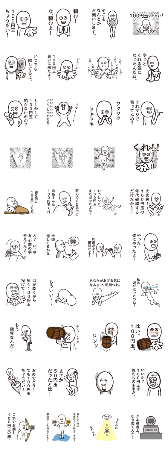 とにかく100円玉を欲しているスタンプです。もしかしてアカウント乗っ取られた?いいえ、心の底から100円玉が欲しい。