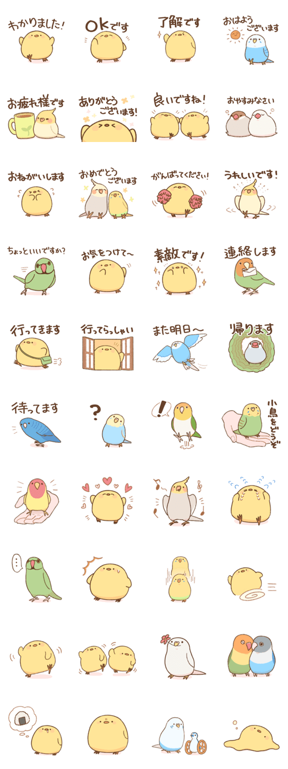 ひよことインコと文鳥の使いやすい敬語スタンプ